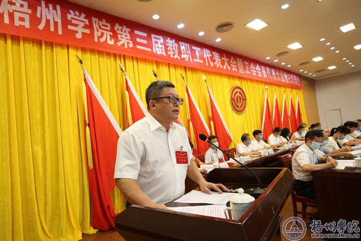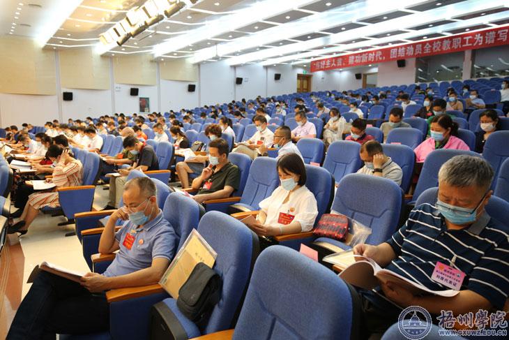 6月17日下午,学校在明理楼学术报告厅召开第三届教职工代表大会暨工会会员代表大会第三次会议。学校领导唐平秋、杨奔、曹迎、玉振明、邱房贵、梁业华、麻新纯、宾月景出席会议,155名正式代表、28名列席代表参加会议。