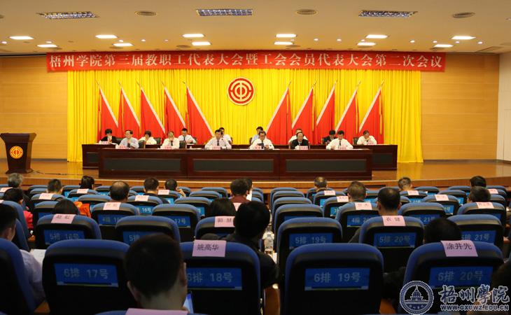 5月8日下午,学校在明理楼学术报告厅召开第三届教职工代表大会暨工会会员代表大会第二次会议.学校领导唐平秋、杨奔、玉振明、邱房贵、梁业华、麻新纯出席会议,140多名正式代表、列席代表参加会议。