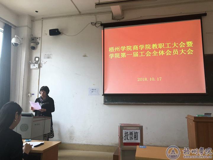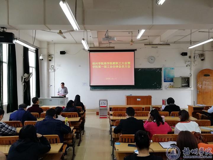 10月17日,商学院在南楼601教室召开了教职工大会暨学院第一届工会全体会员大会,全院76名教职工参加会议,副院长赵虹主持会议。